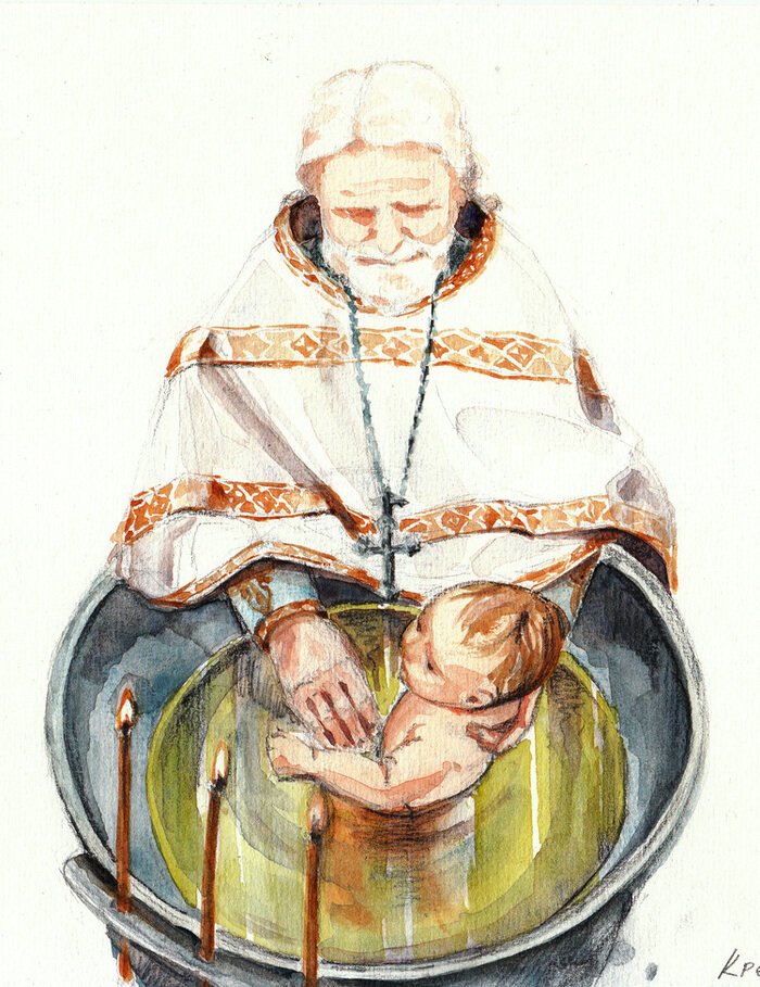 Акварельные иллюстрации крещения для