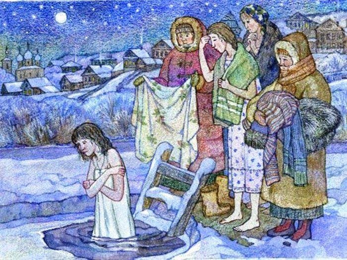 Купание в проруби рисунок