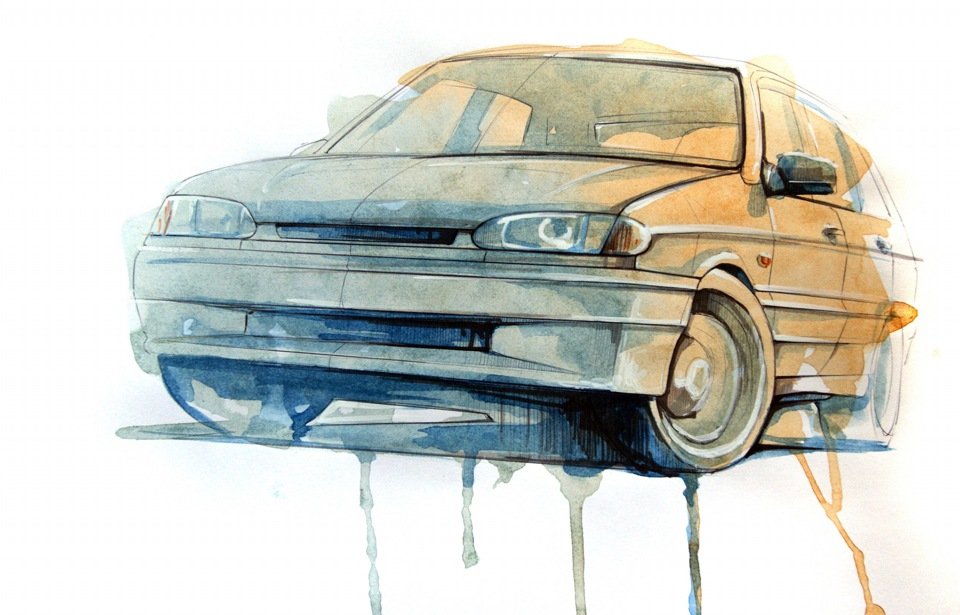 ![Машина акварелью]()