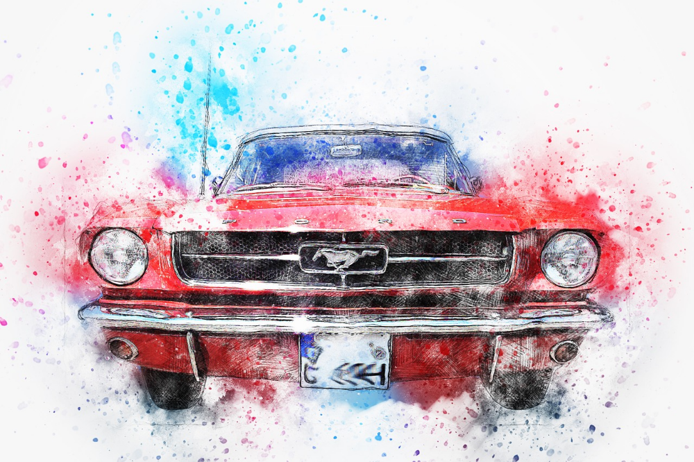 Форд Мустанг 1967 красный акварель