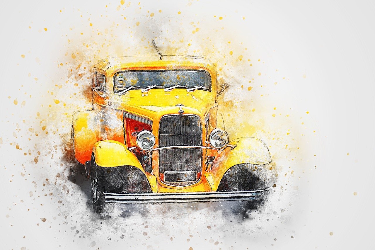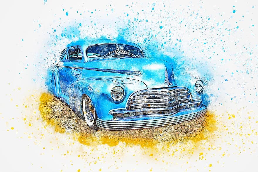 ![Ретро автомобиль акварель]()