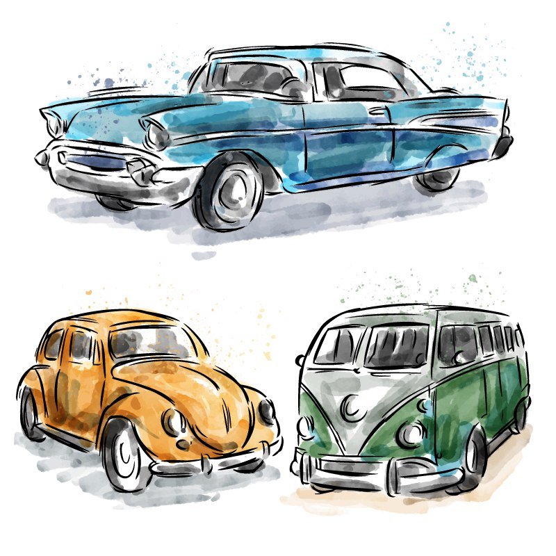 ![Ретро машина акварель]()