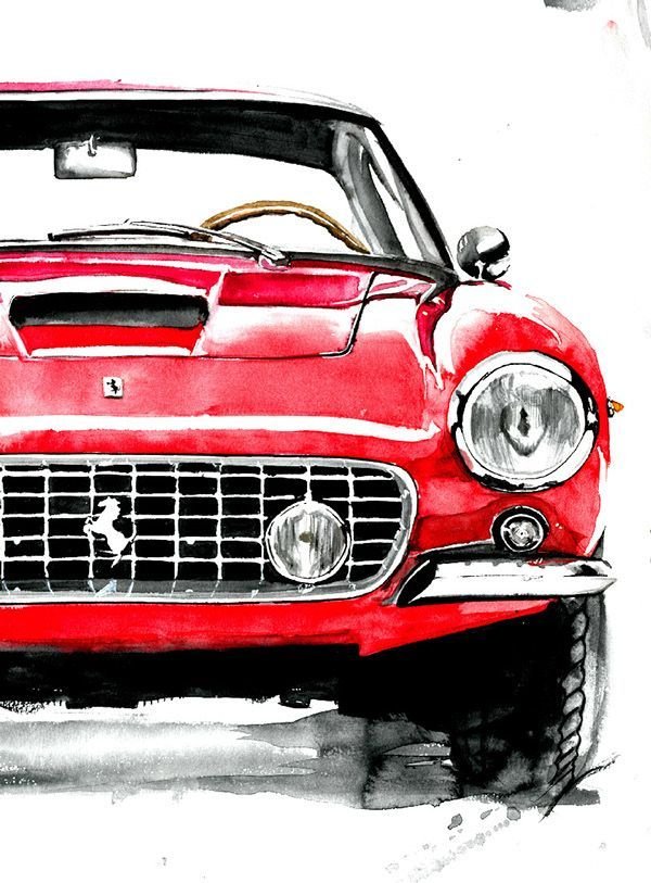![Рисунки автомобилей акварелью]()