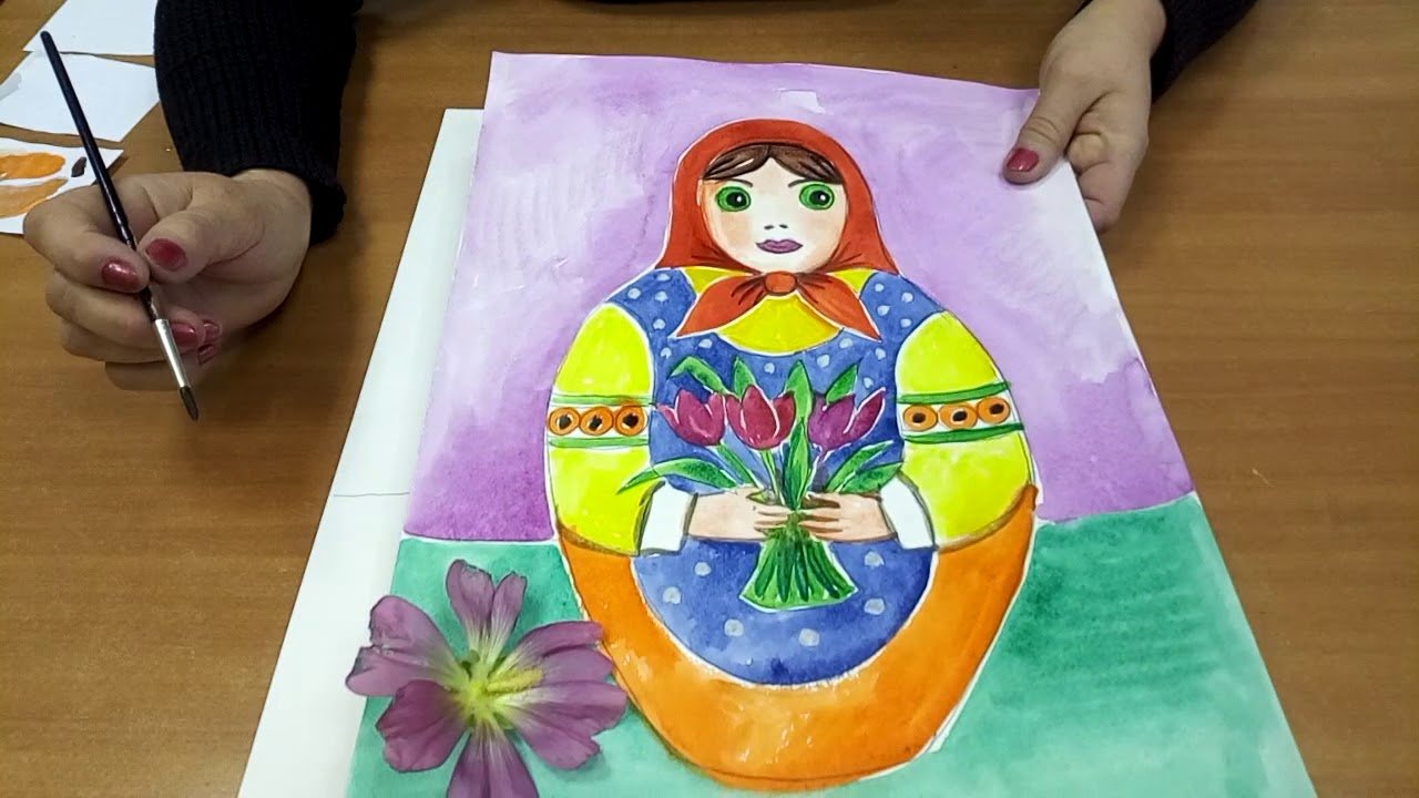 ![Матрешка акварель]()