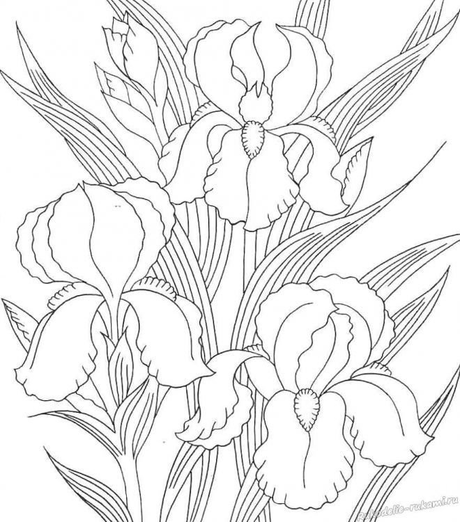 ![Ирисы раскраска]()