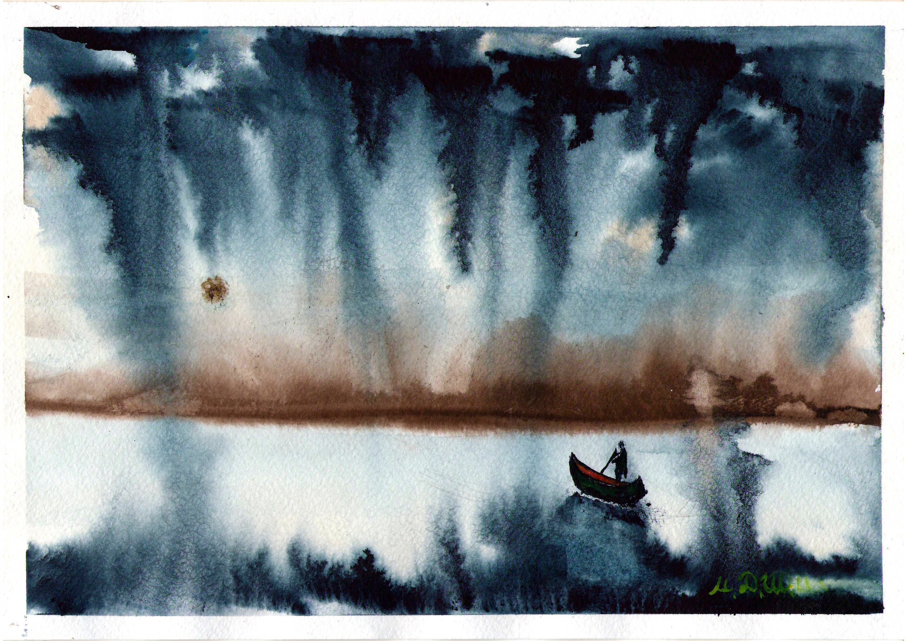 ![Мрачный пейзаж акварелью]()