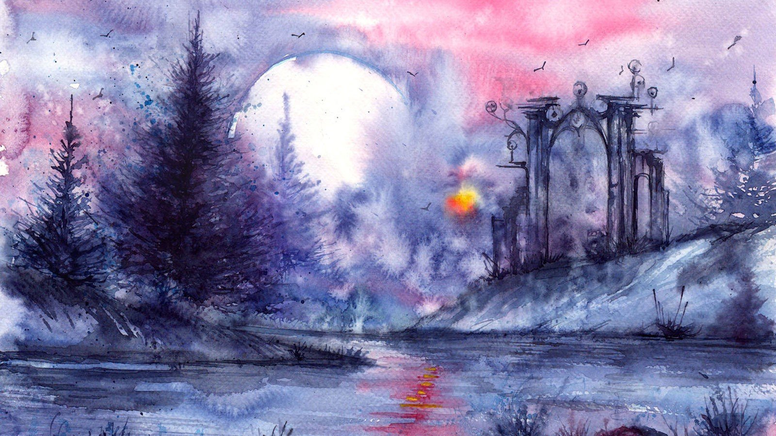 ![Фантастические пейзажи акварелью]()