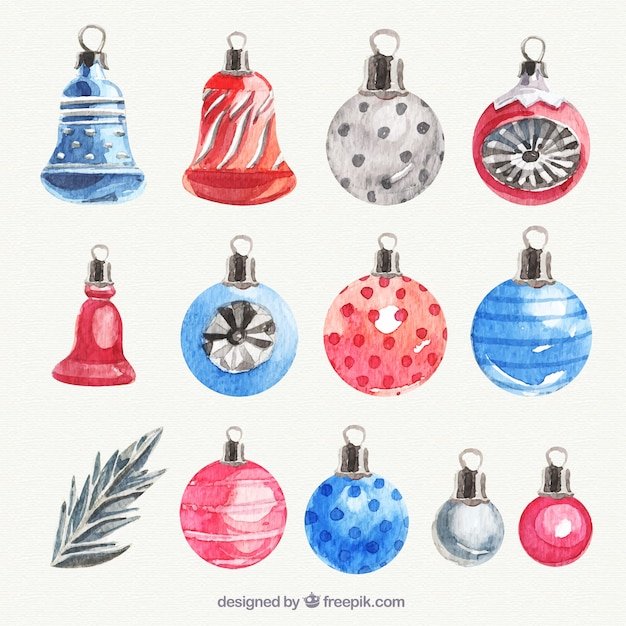 ![Новогодние игрушки акварель]()