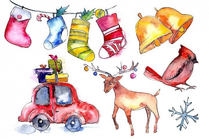 Новогодние Акварельные иллюстрации