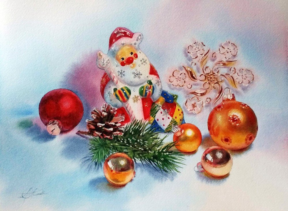 ![Новогодний натюрморт акварелью]()