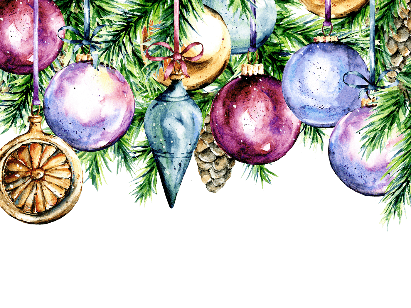 ![Акварельные новогодние игрушки]()