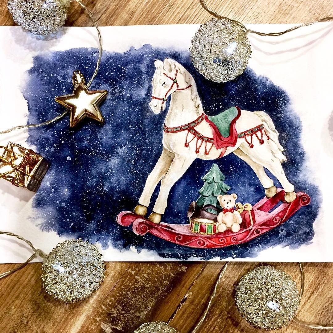 Новогодние открытки акварелью нарисовать