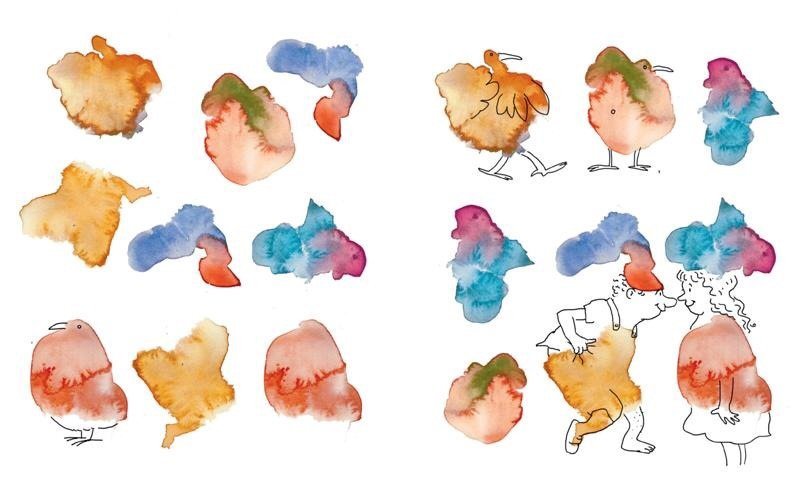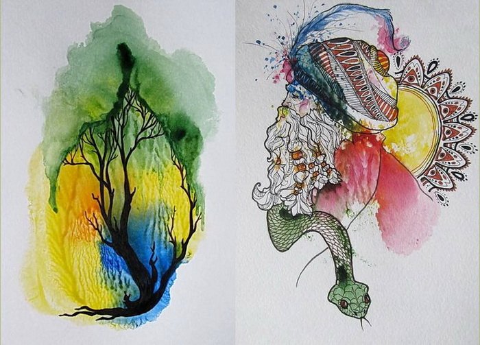 ![Рисунки пятнами акварелью]()
