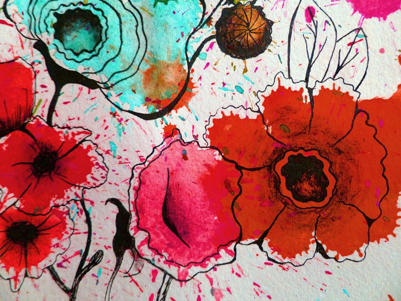 Акварель с гелевой ручкой