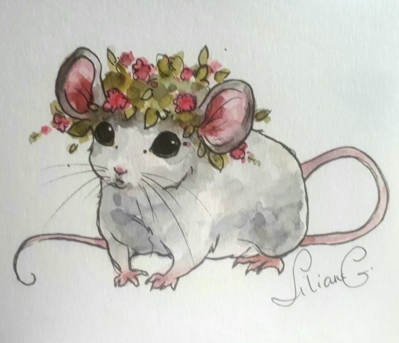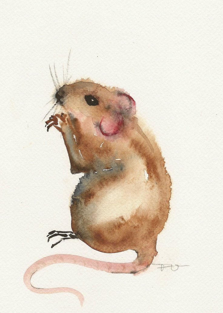 ![Мышь рисунок акварелью]()