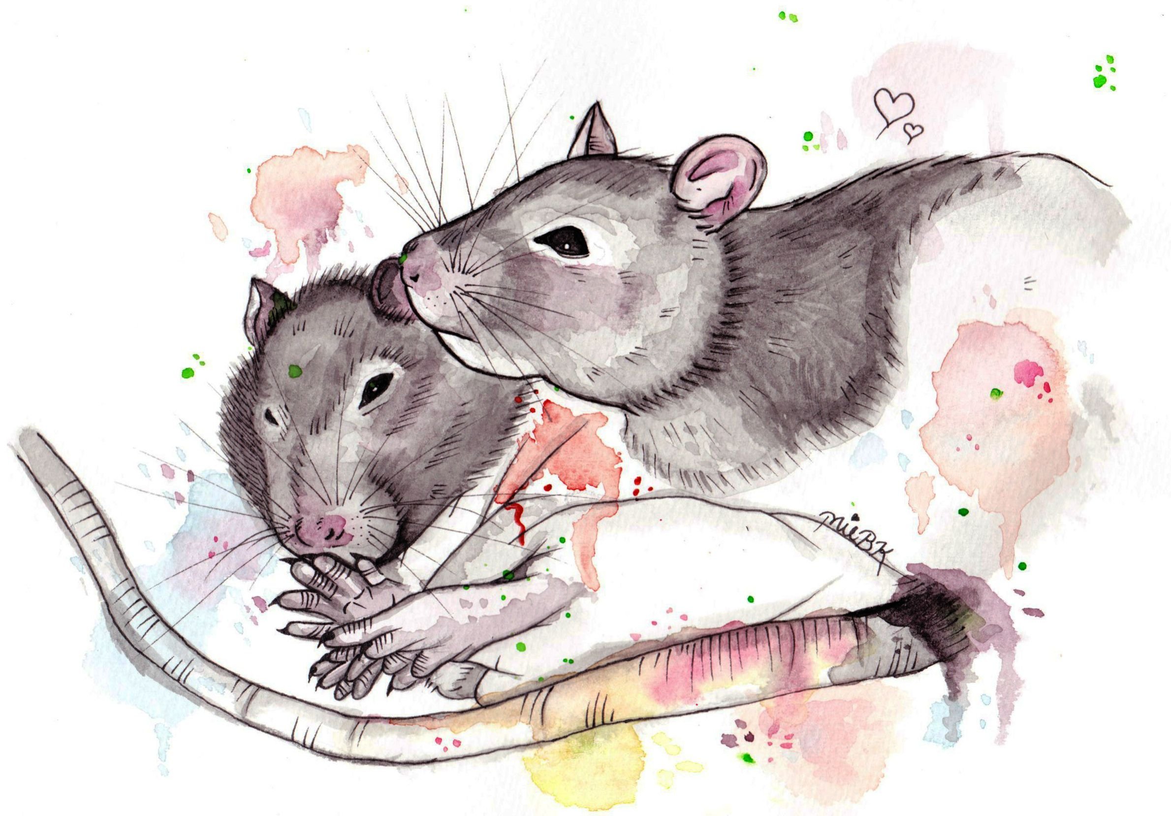 ![Зарисовки крыс акварелью]()