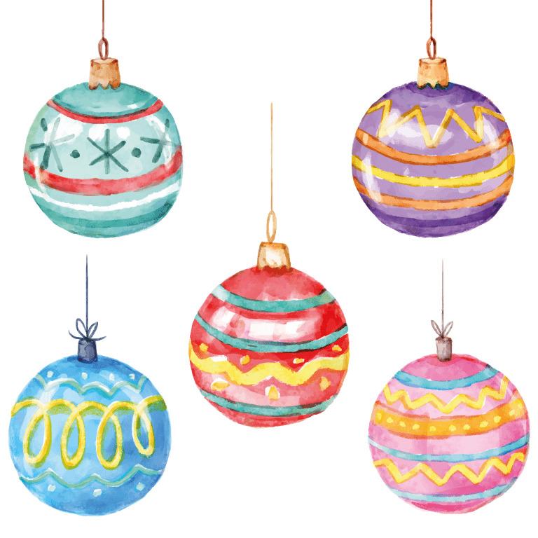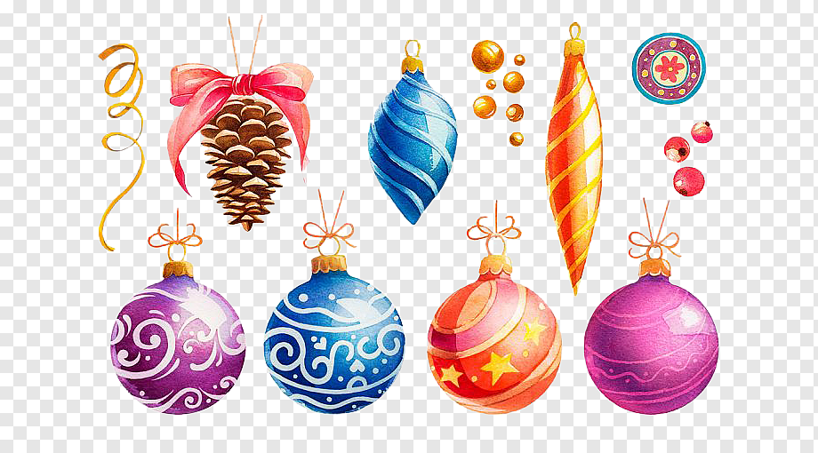 ![Новогодние игрушки акварель]()