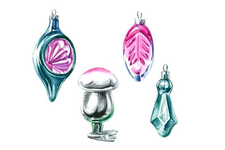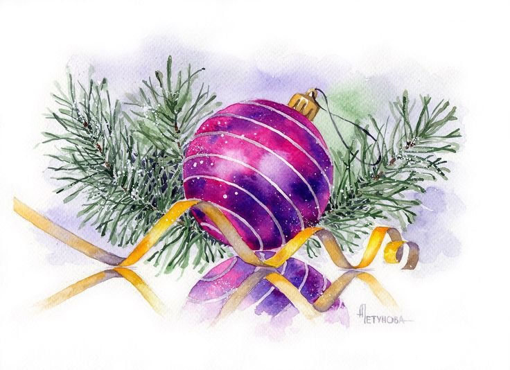 ![Елочные игрушки акварель]()