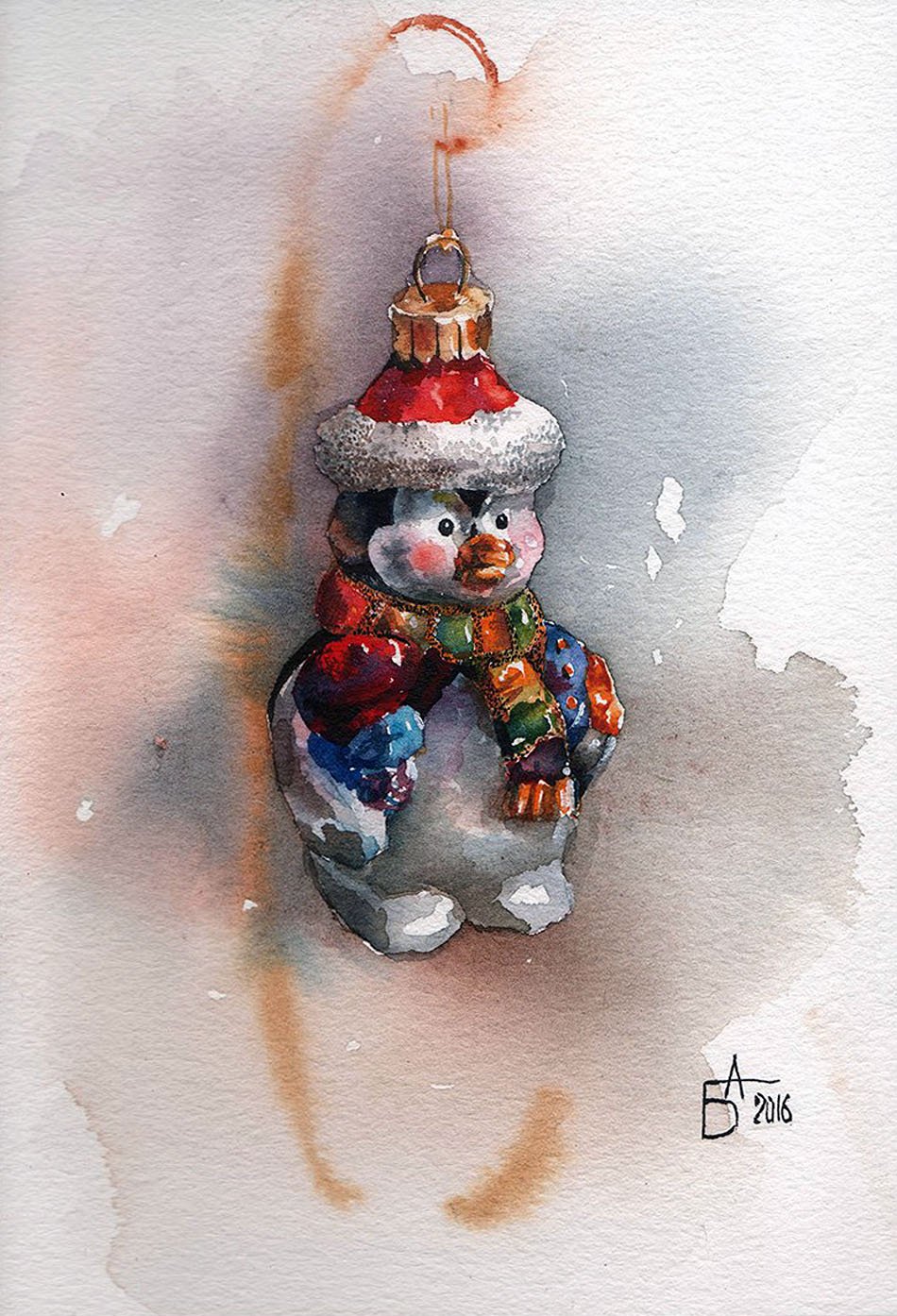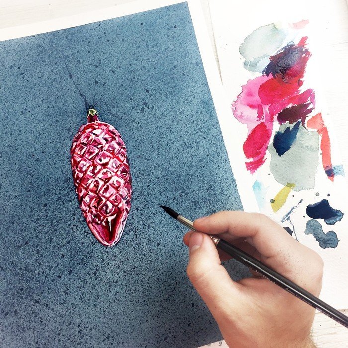 ![Елочный шар акварелью]()