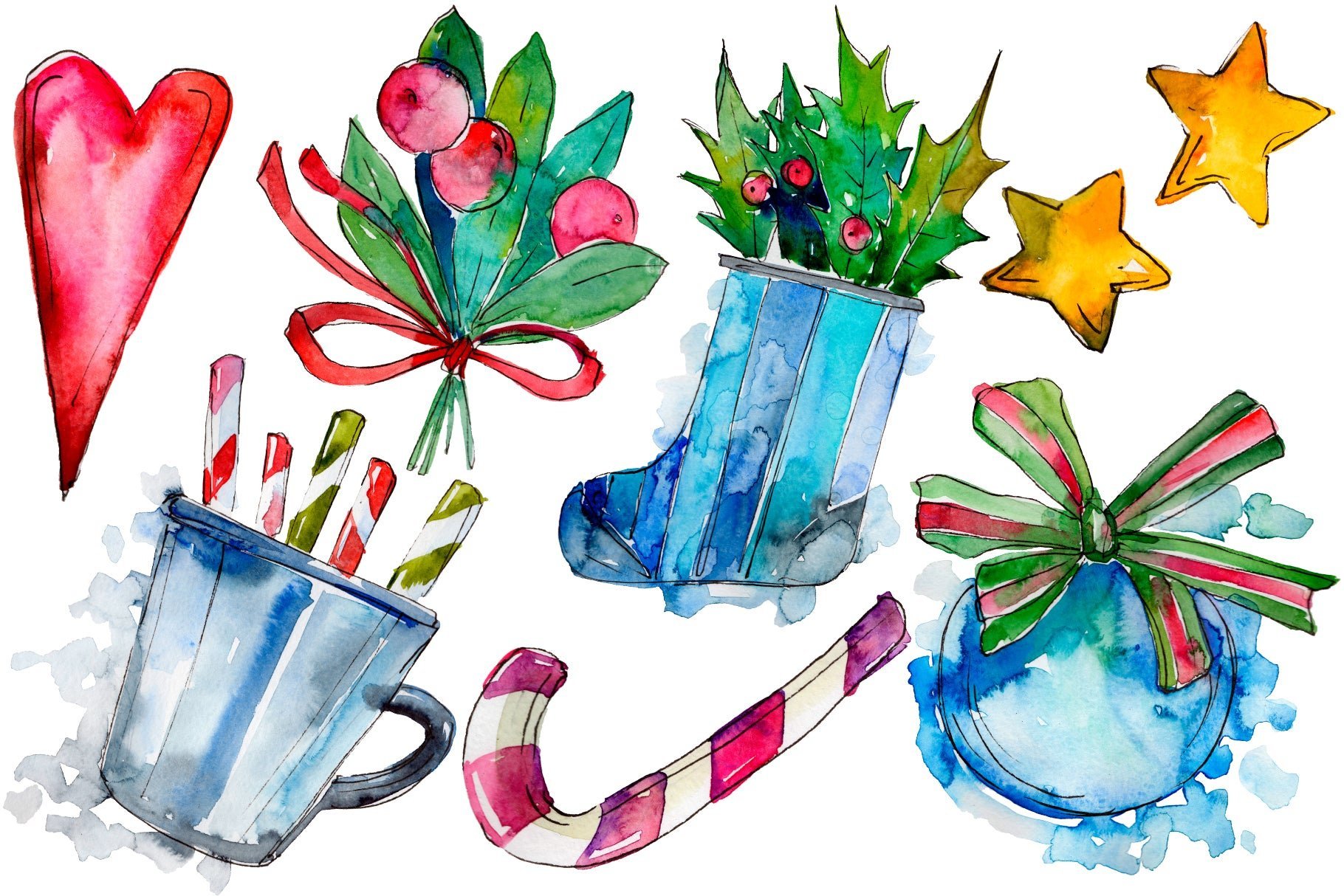 ![Акварельные новогодние игрушки]()