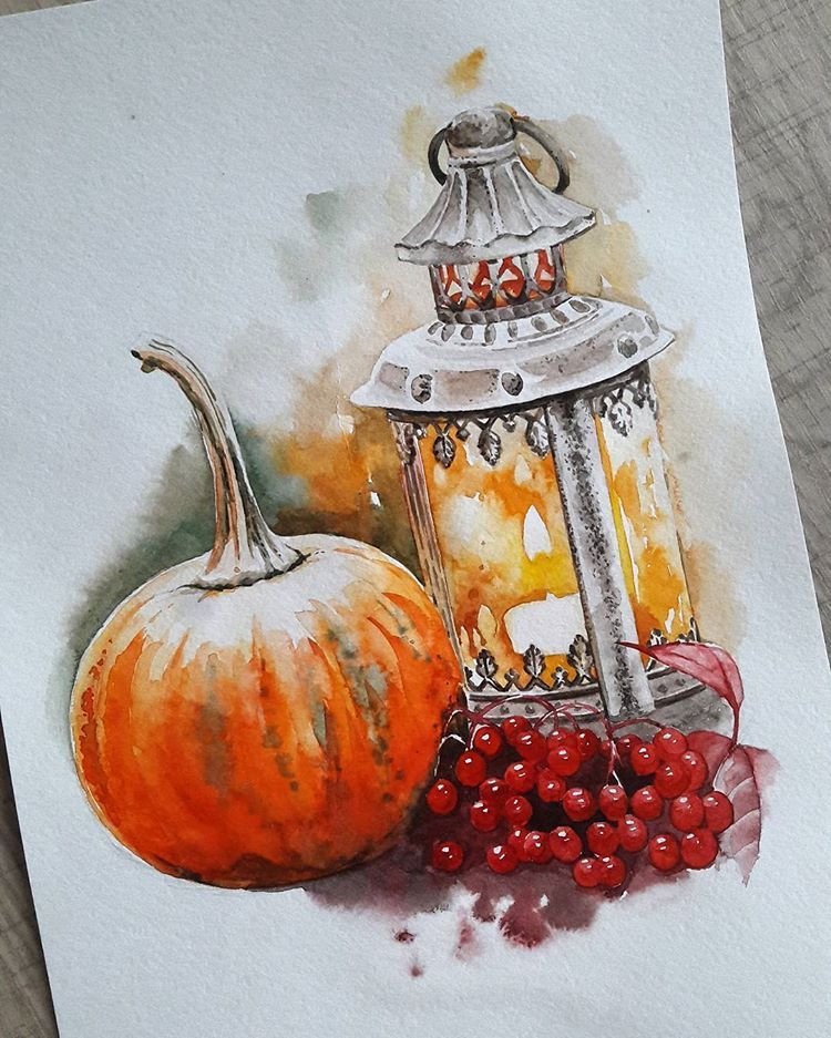 ![Натюрморт с тыквой акварель]()