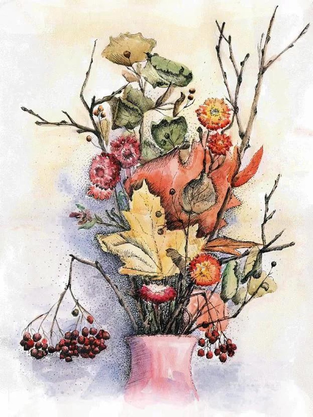 ![Осенняя композиция акварелью]()
