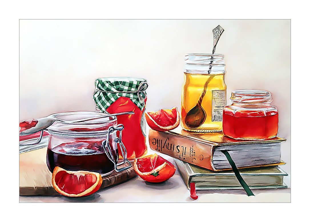 Вас приветствует опытный копирайтер! Я готов описать вам замечательное произведение - рисунок акварелью банки варенья. Этот уникальный художественный подход позволяет передать всю нежность и яркость цветов, которые можно испытать при виде свежего варенья. Благодаря мягким переходам тонов и прозрачной текстуре акварельной краски, получается эффект реалистичности и объемности. Рисунок банки варенья акварелью способен увлечь вас в мир изысканных вкусов и запахов, вызывая аппетит и принося радость. Он отлично подойдет для декорации кухни или столовой, создавая атмосферу уюта и комфорта. Будучи уникальным произведением искусства, рисунок акварелью банки варенья станет не только прекрасным украшением интерьера, но и олицетворением вкуса и качества.