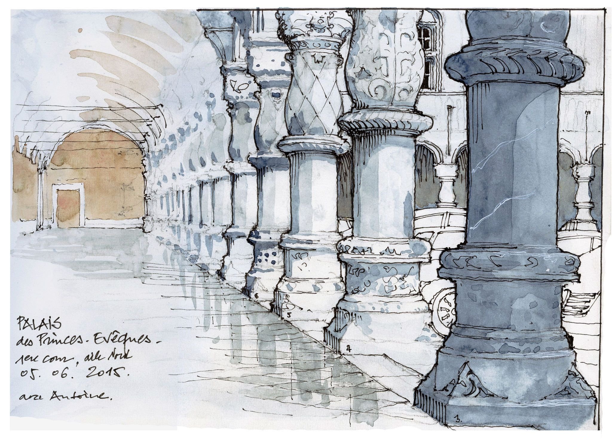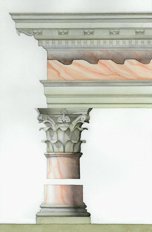 ![Отмывка акварелью колонны]()