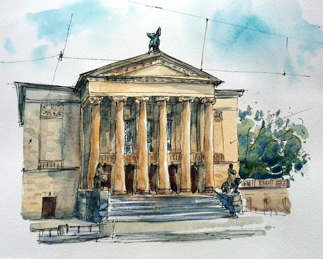 ![Архитектурный скетчинг акварель Питер]()