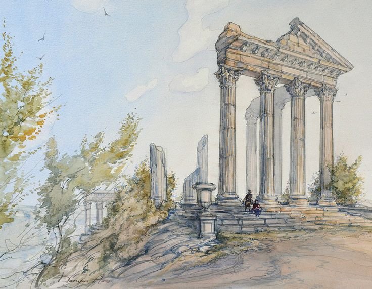 ![Скетчинг древняя Греция сад]()