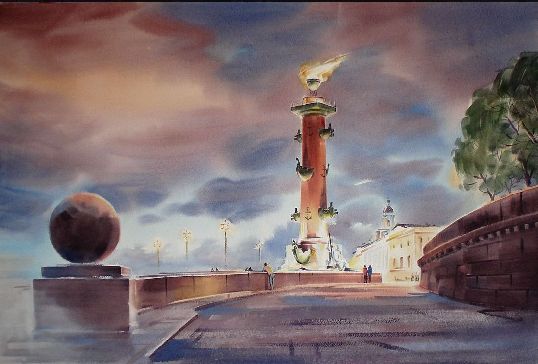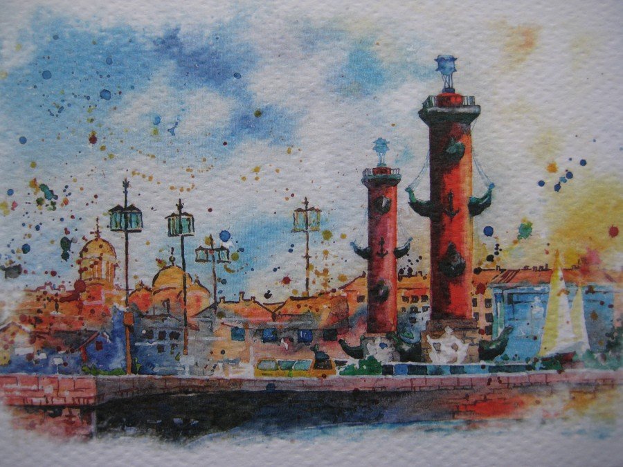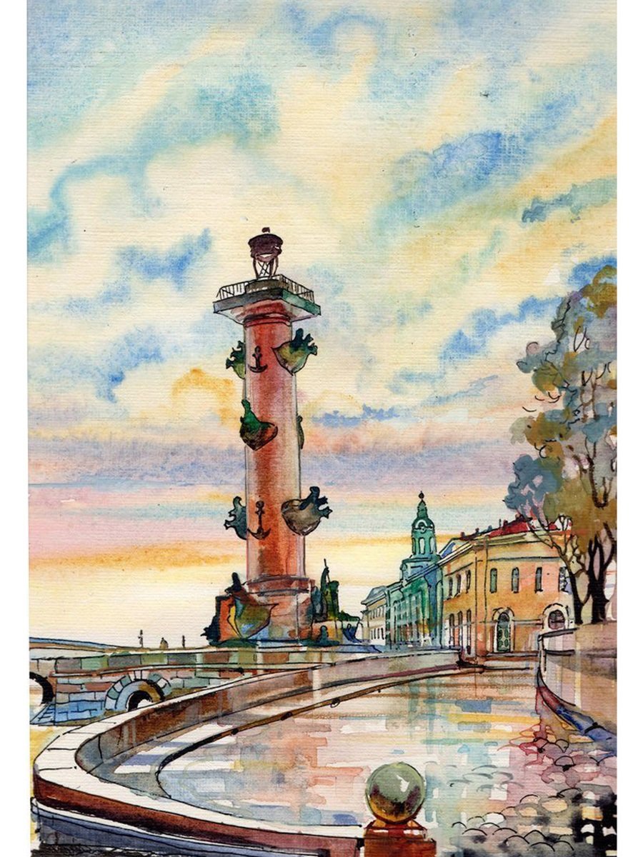 ![Петербург в акварели Ростральные колонны]()