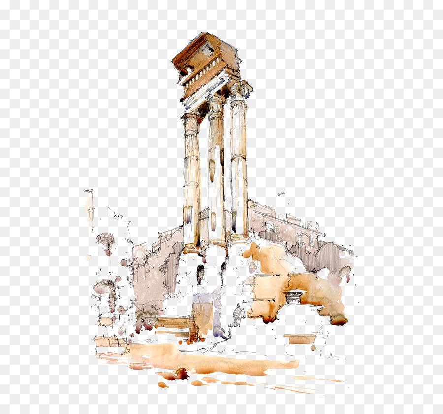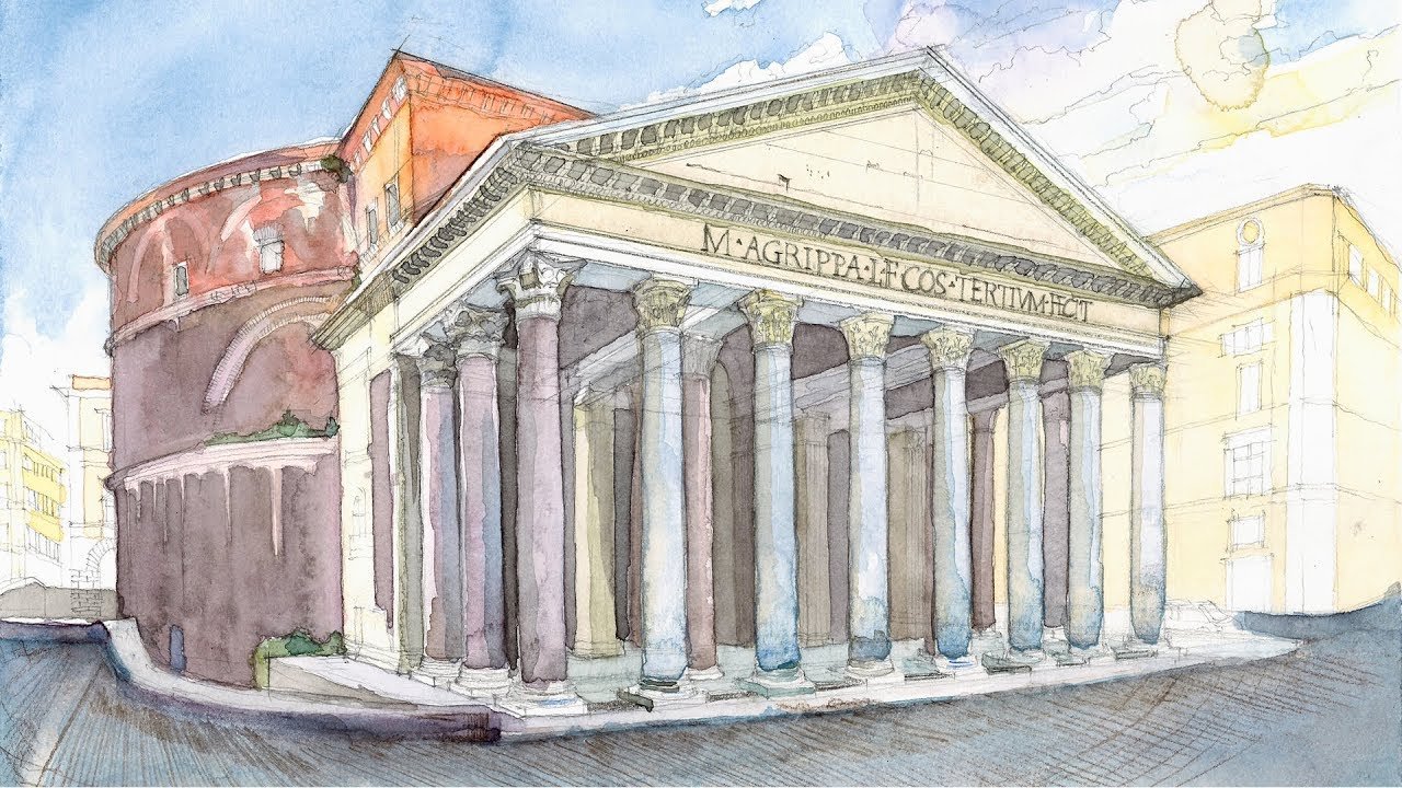 ![Архитектурный скетч акварелью Рим]()