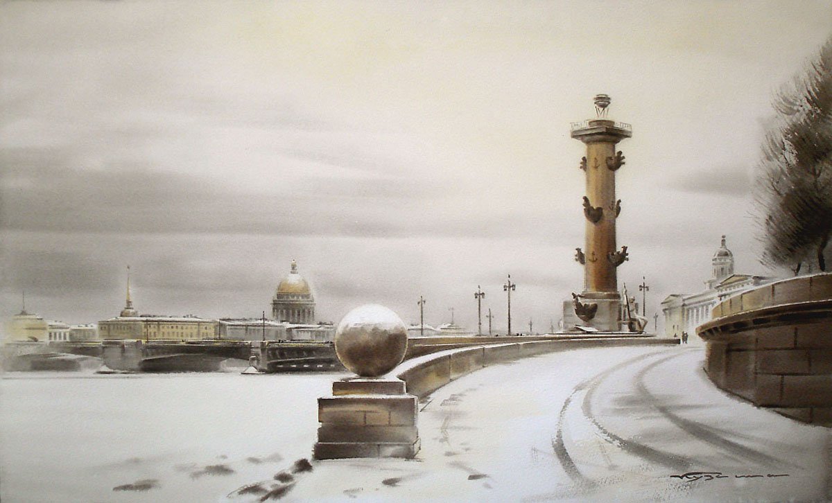 ![Стрелка Васильевского острова акварель]()