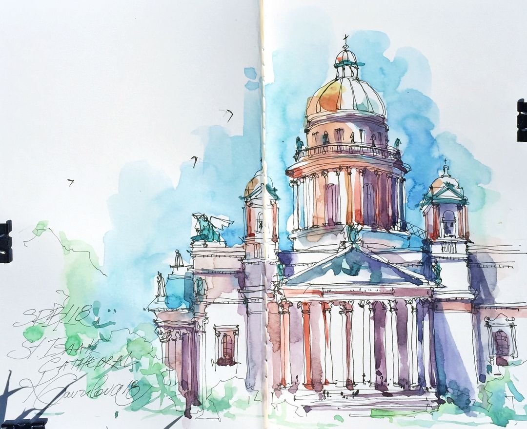 Архитектурный скетчинг акварель Питер