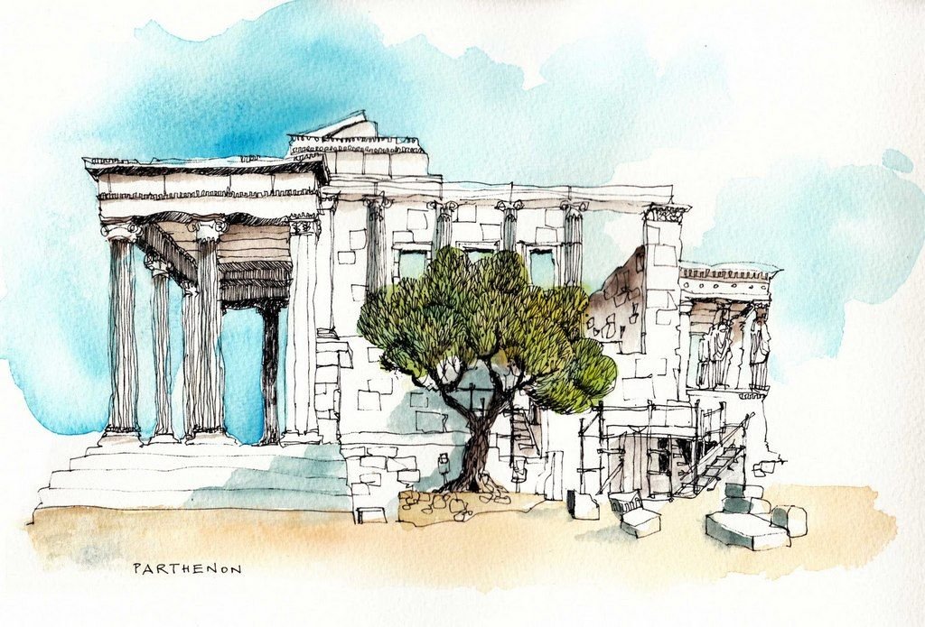 Акрополь Греция зарисовка