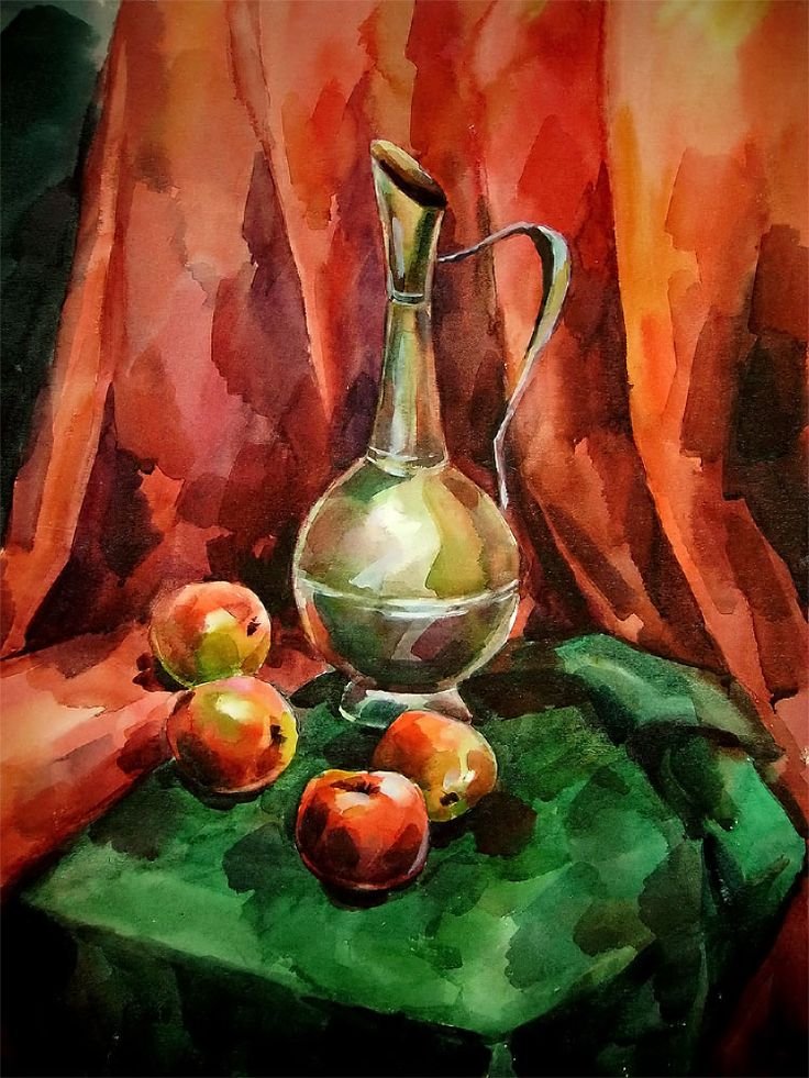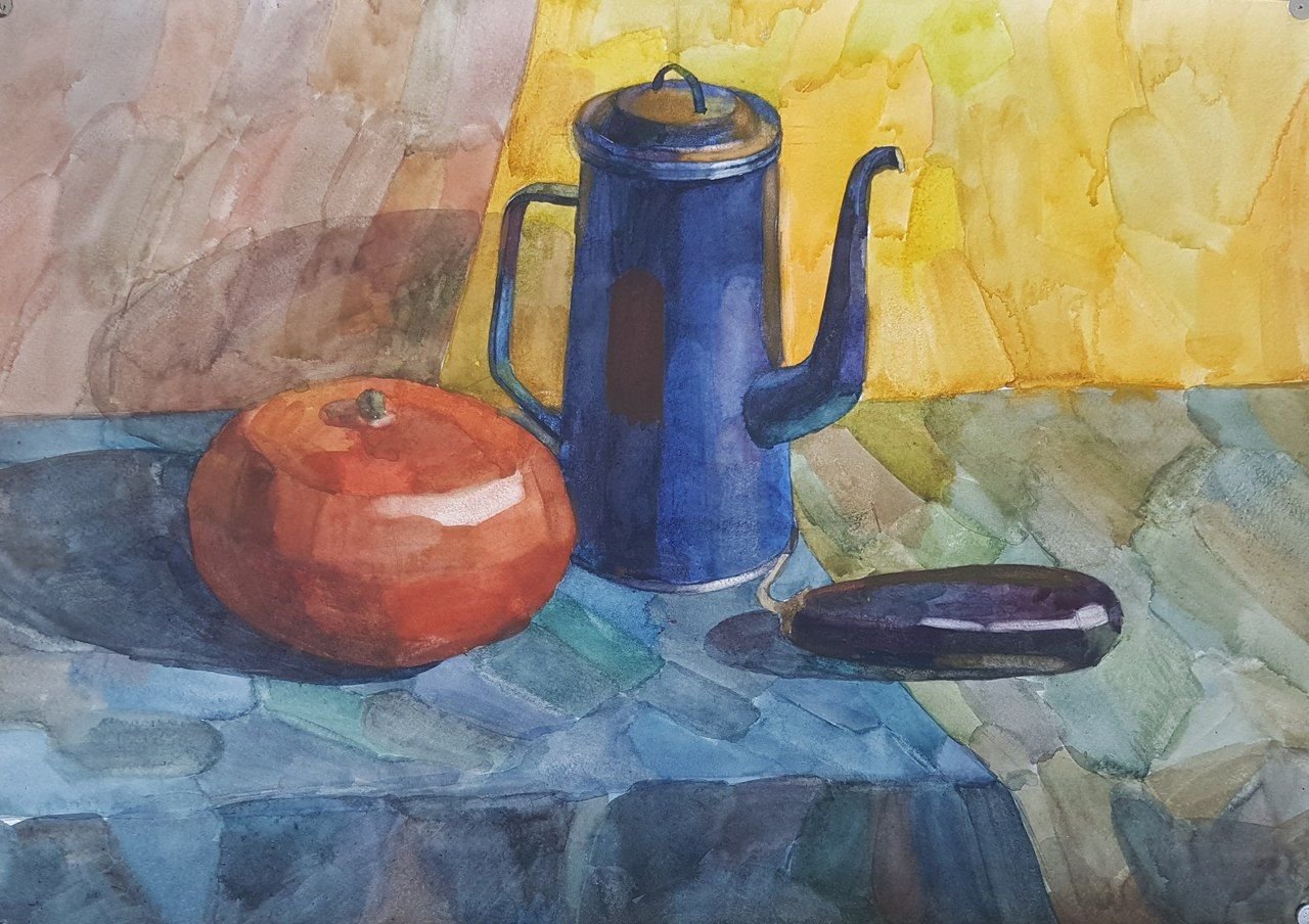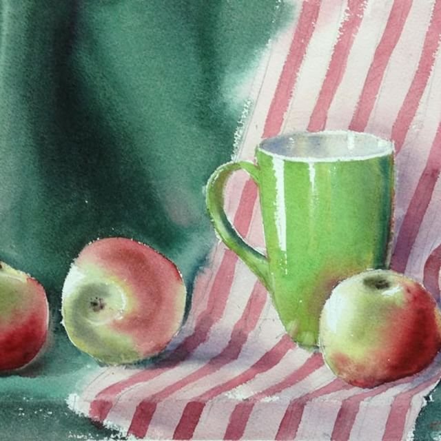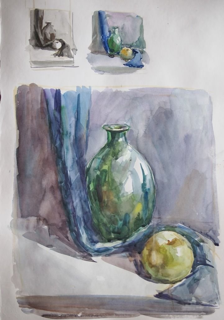 ![Натюрморт акварелью лессировка Академическая живопись]()