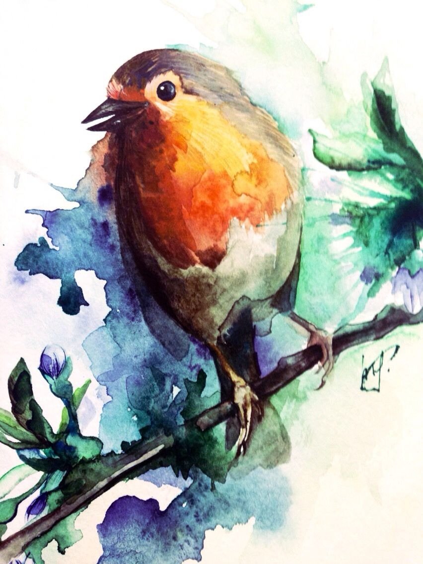 ![Птичка из акварели]()