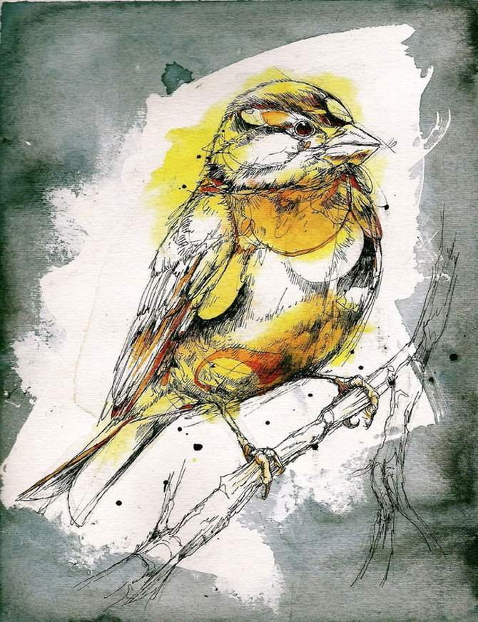 ![Зарисовки птиц акварелью]()