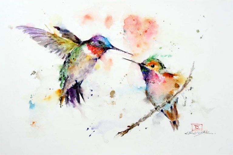 ![Колибри акварель лессировка]()