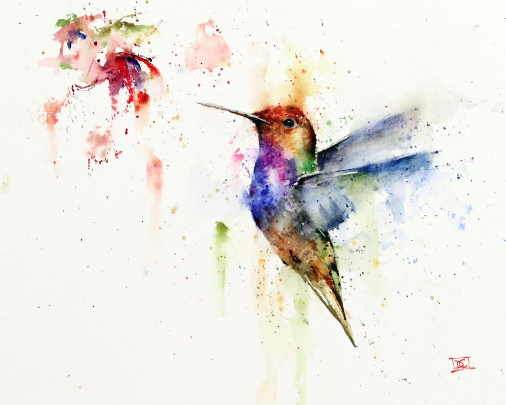 Колибри акварель лессировка