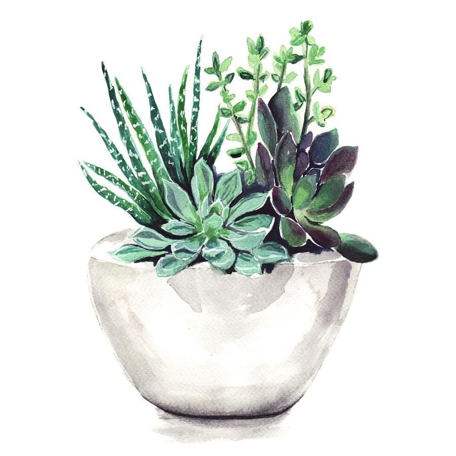 ![Суккуленты акварель]()