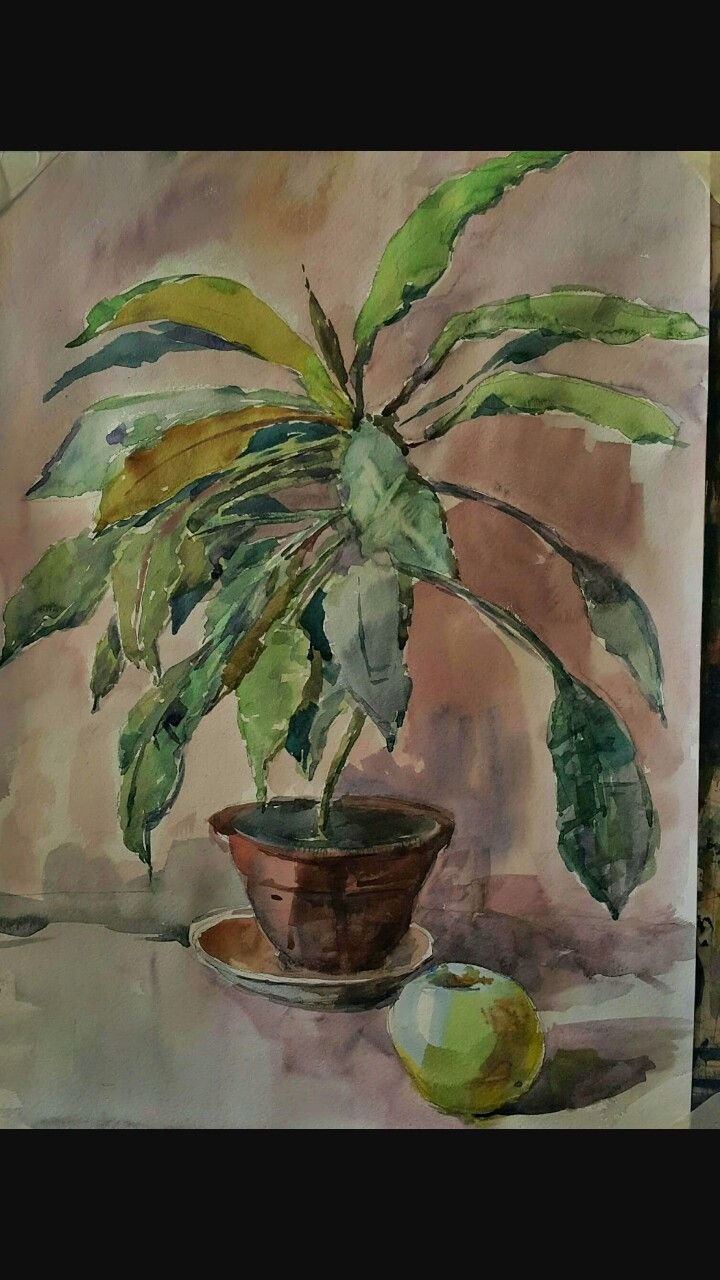 ![Этюд комнатных растений акварелью]()