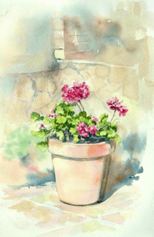 ![Цветы акварелью этюды в горшке]()