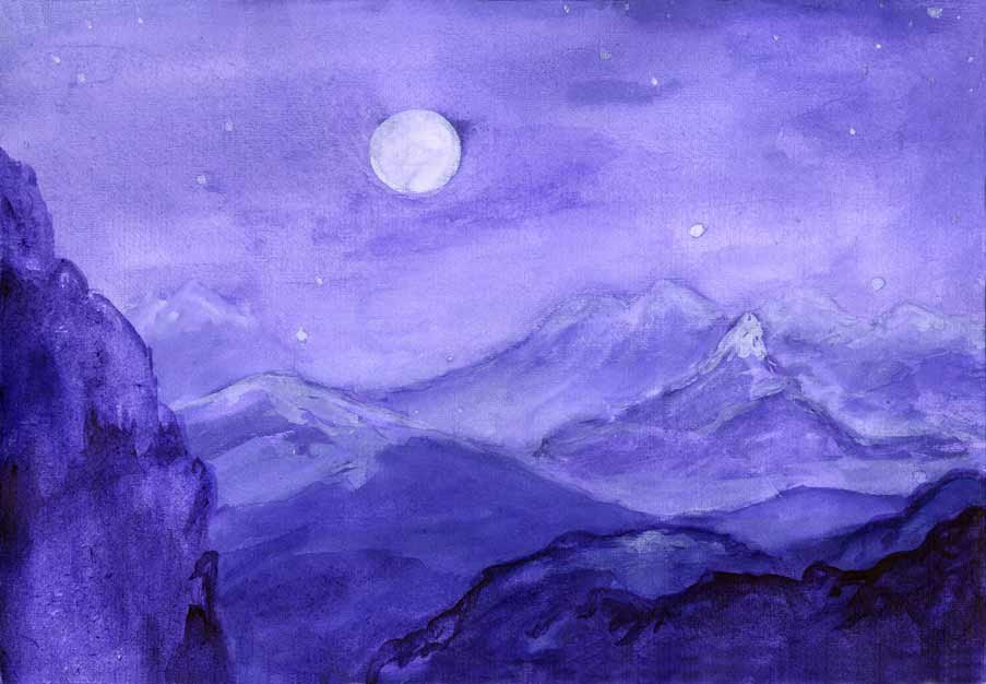 Ночные горы акварелью