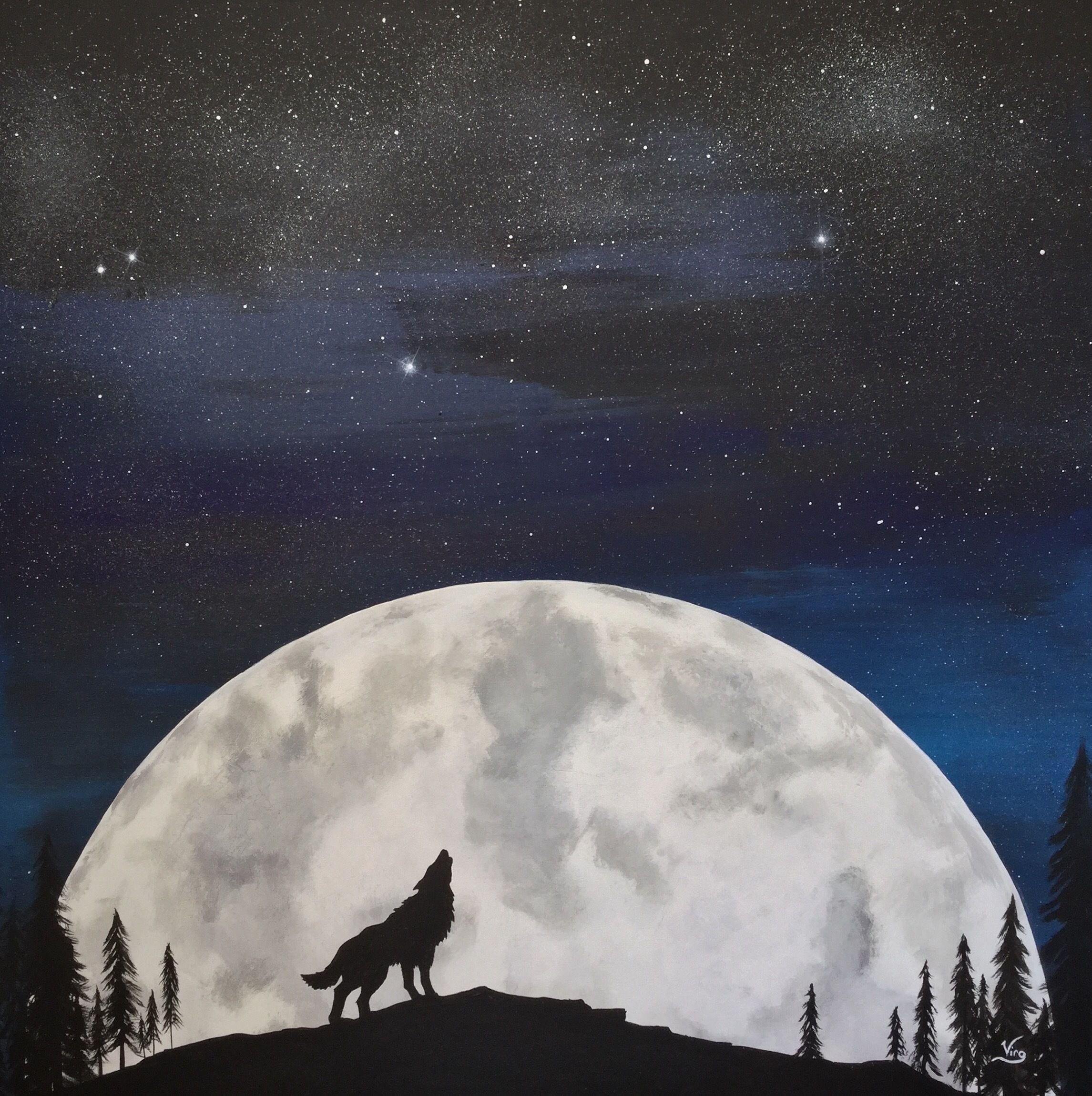 Ночной пейзаж акрилом