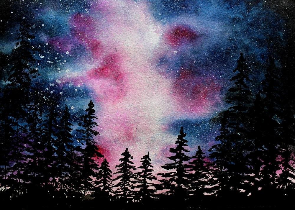 ![Звездное небо акварель]()