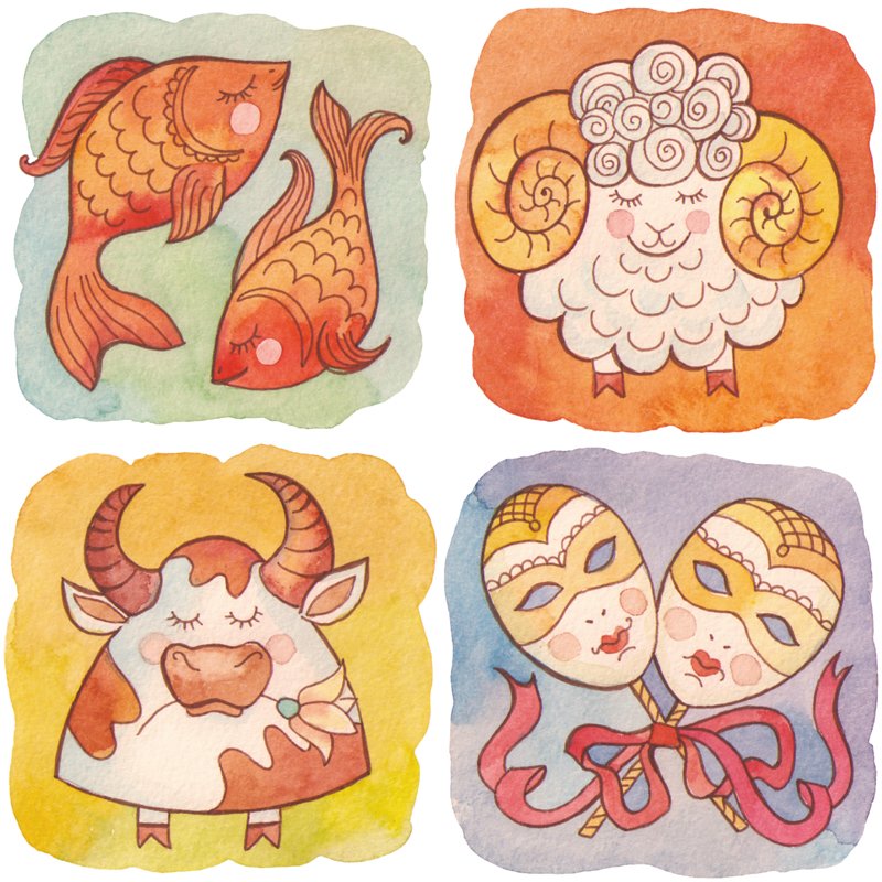 ![Акварельные знаки зодиака]()