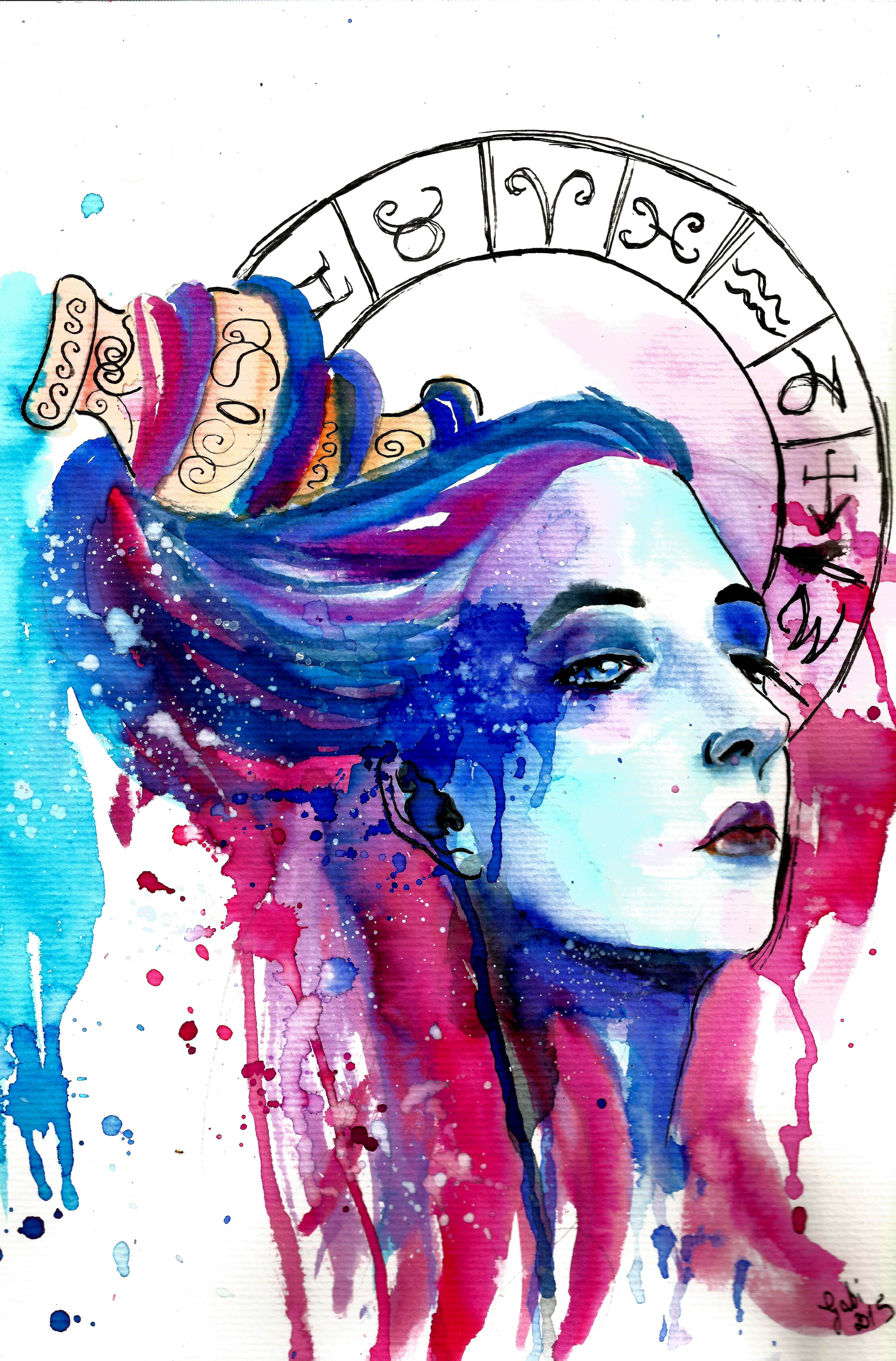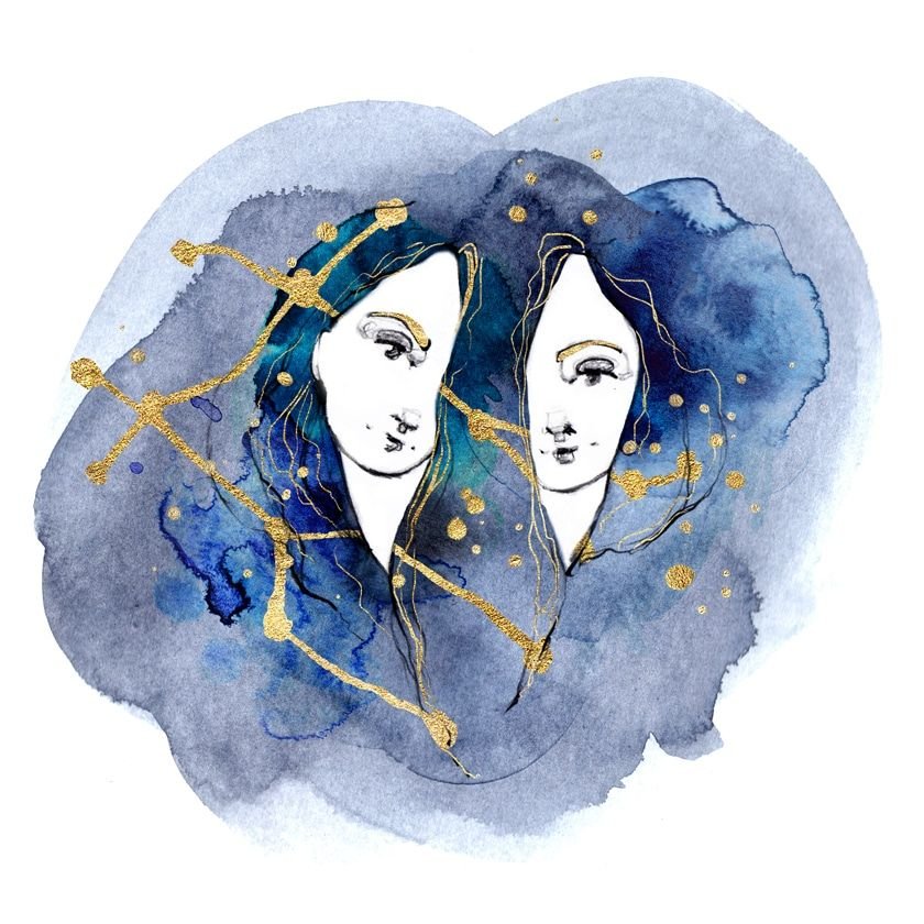 Близнецы знак зодиака акварелью