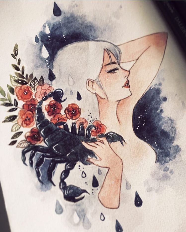 ![Скорпион в стиле акварель]()
