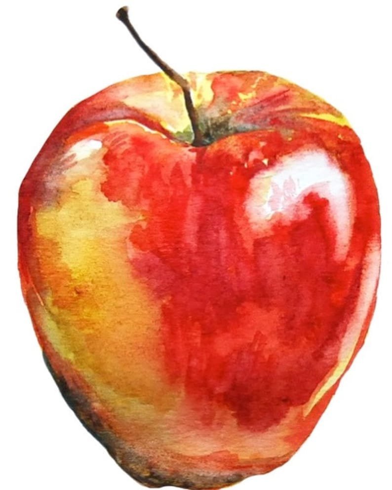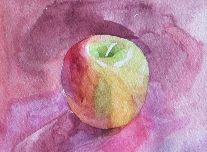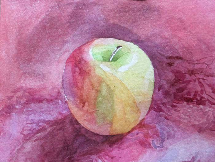 Яблоко акварелью лессировка